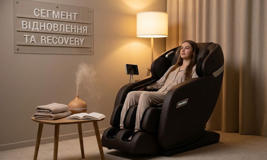 - Фокус на відновленні — масажні столи, інверсійні системи, реабілітація.